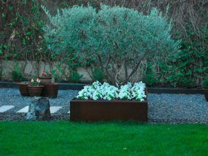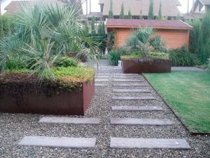 Utilizamos el acero corten para crear jardineras a medida o como borduras para separar espacios o zonas de distinto aspecto y material.