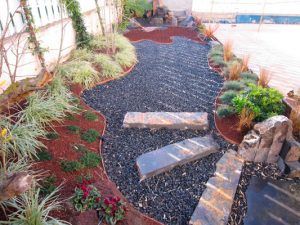 Con el fin de exponer lo menos posible nuestro jardín a la climatología (sol, viento, heladas….).protegemos el suelo con gravas, cortezas, vegetaciones densas o con mallas antihierba cuando sea necesario o aconsejable.