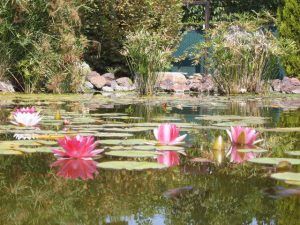 En el estanque la adaptación de peces de colores, nenúfares y plantas semiacuaticas , se fusionan con la vegetación de su contorno y ha propiciado la visita de pájaros como el Martin Pescador, abejarucos ,oropéndolas y alguna garza real, lo que convierte a este jardín en un pequeño paraíso en mitad del Valle del Ebro.
