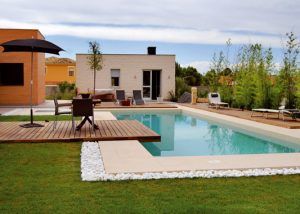Las maderas tropicales certificadas de una inmejorable calidad, un excelente césped artificial esponjoso que permita andar descalzo, combinado con gravas. La calidez y belleza de plantas en jardineras de acero corten o de traviesa ecológica, dan juego a un infinito numero de posibilidades combinadas entre sí.