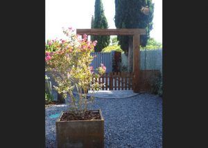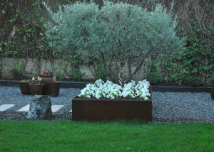 Utilizamos el acero corten para crear jardineras a medida o como borduras para separar espacios o zonas de distinto aspecto y material,.
