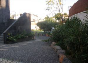 La sencillez de dar un color apropiado a las paredes grises, la elección de vivaces resistentes con floraciones desde primavera a otoño, los granados, los árboles de júpiter, los prunus pisardiis, los manzanos de flor (mallus purpurea)….crean por sí mismos la sensación real de tener un jardín en las alturas.